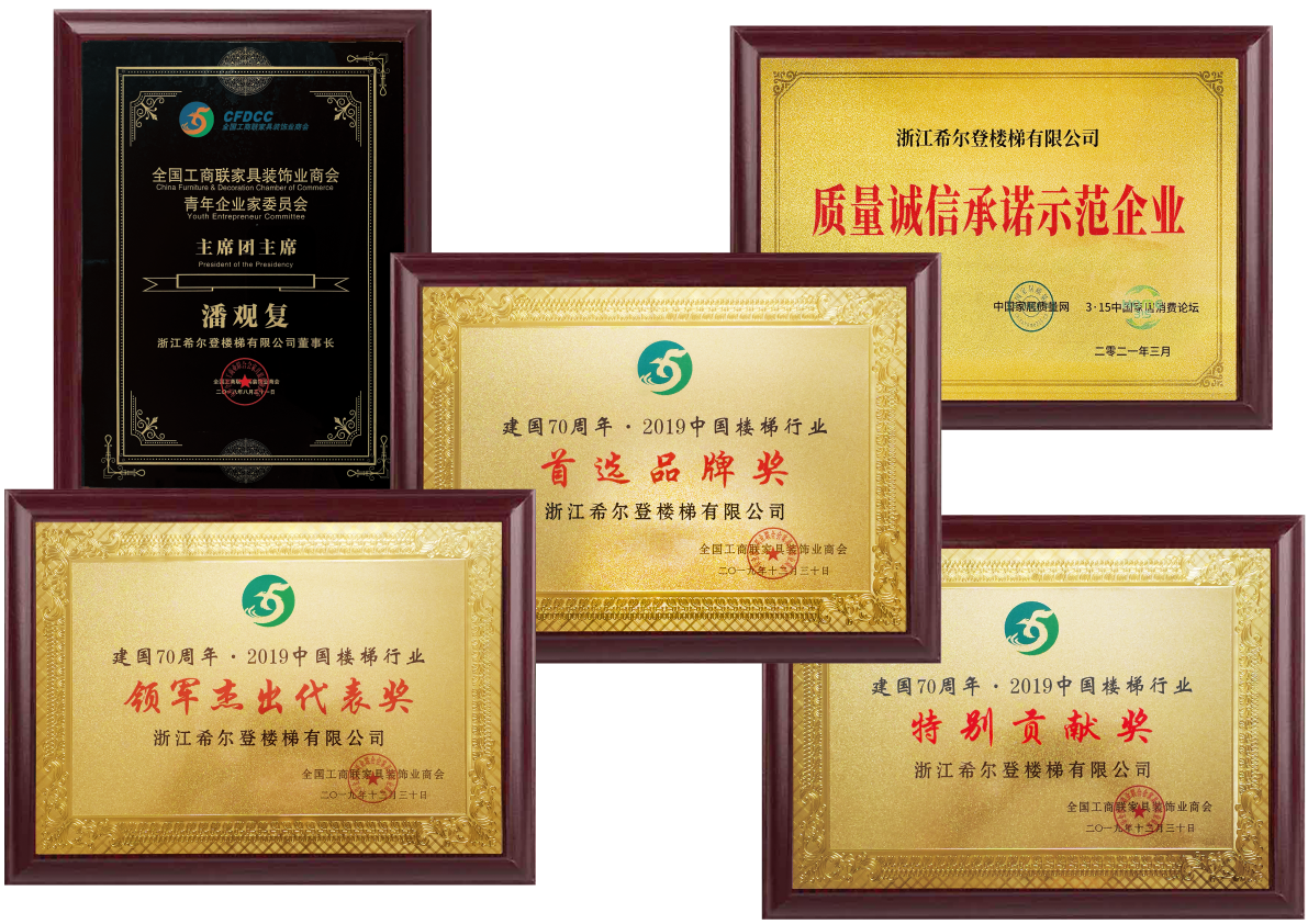 在不斷提升希爾登品牌和企業(yè)實力的同時,希爾登一直熱心參與樓梯行業(yè)的健康發(fā)展;參與創(chuàng)立全國工商聯(lián)樓梯專委會并被推選為中國樓梯品牌聯(lián)盟執(zhí)行主席和樓梯專委會執(zhí)行會長;憑借在行業(yè)內(nèi)的專業(yè)地位,希爾登參與了《木質(zhì)樓梯》,《木質(zhì)樓梯安裝驗收和使用規(guī)范》,《住宅內(nèi)用樓梯》,《建筑用玻璃與金屬護欄》四個國家和行業(yè)標準的起草工作。先后榮獲“中國樓梯十大品牌”、“金木樓梯領軍品牌”、“中國泛家居發(fā)展中企業(yè)500強”、“中國家裝行業(yè)金鉆獎”、“金屬木質(zhì)樓梯一級資質(zhì)”等二十多個榮譽和稱號。我們幾乎參與和見證中國樓梯發(fā)展歷程中的所有重大事件。希爾登過去,現(xiàn)在和未來都是中國樓梯的標桿企業(yè)。